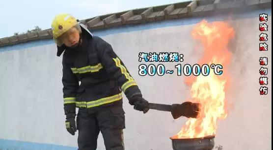 用汽油再做一次實驗,發(fā)現(xiàn)防火手套被點燃了,但是只要離開明火,也會迅速熄滅,符合國家標準,消防服續(xù)燃時間≤2秒。