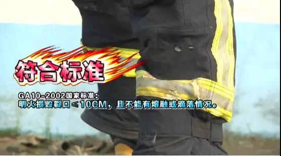 按照國家的標準,消防服被明火點燃損毀之后,它的損毀裂口不能大于10厘米,且不能有融熔或者滴落的情況。從實驗的結果看,這件消防服是符合要求的。